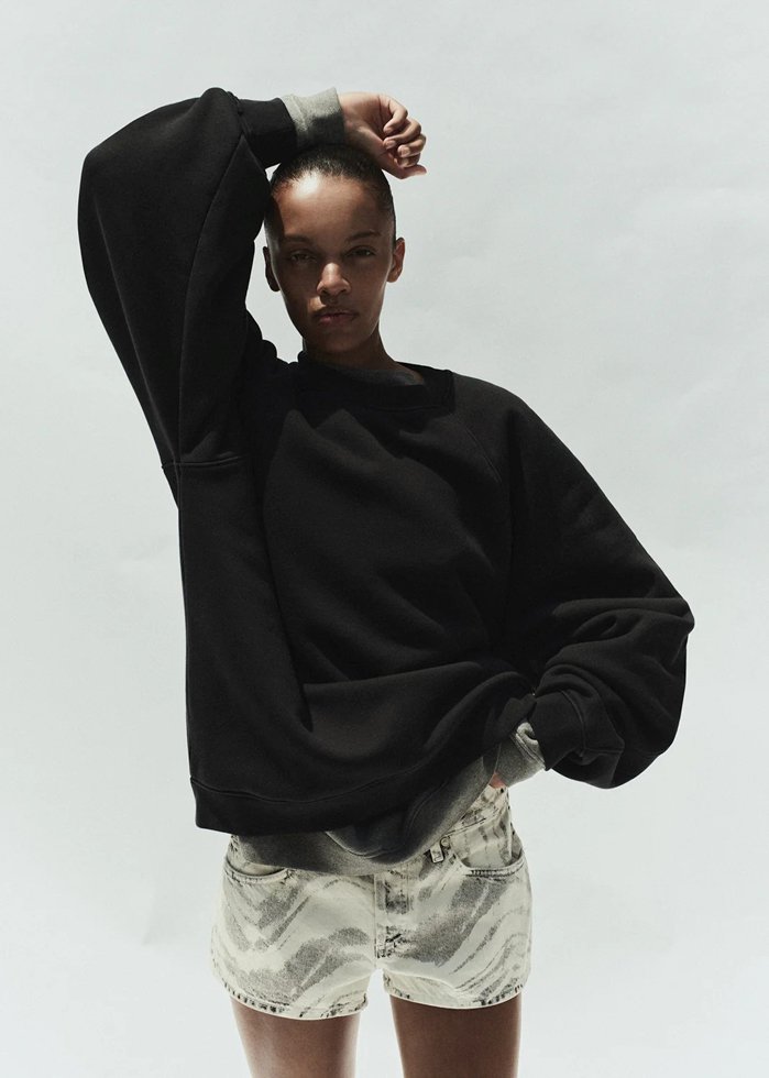 „Valma“ džemperis išsiskiria laisvu, oversized siluetu ir subtiliai dėvėtu efektu. Išblukusios juodos spalvos modelis su nuleistais pečiais ir klasikine apvalia iškirpte kuria modernų, neįpareigojantį įvaizdį. Vidus minkštas ir švelnus, tačiau audinys išlieka kvėpuojantis – puikus balansas tarp jaukumo ir stiliaus.