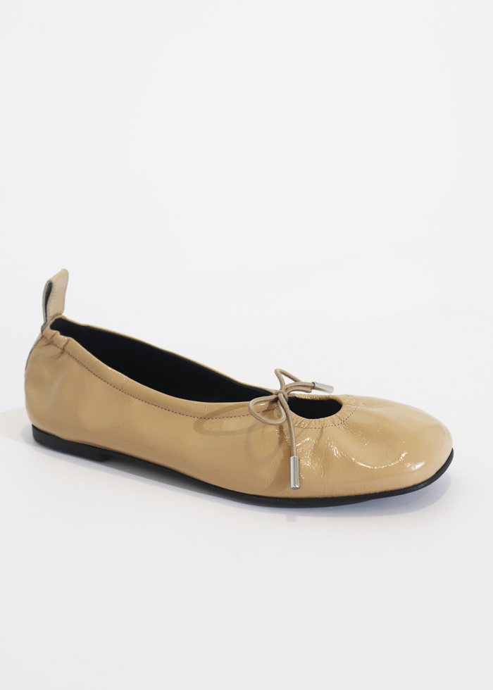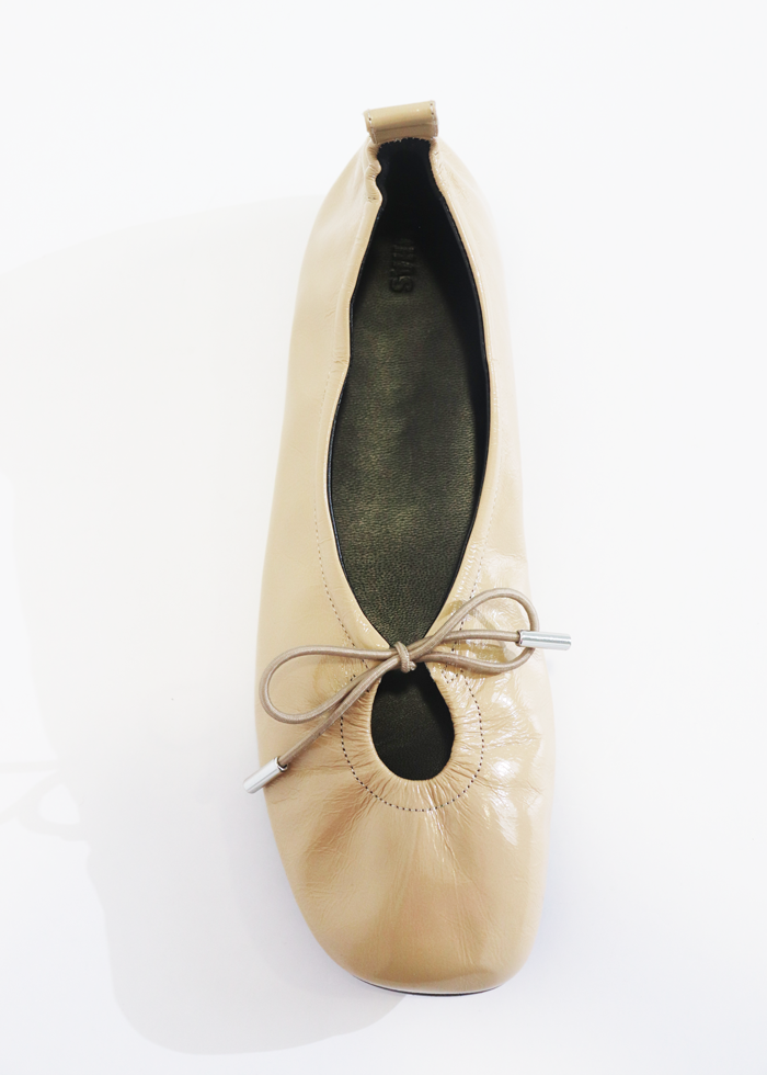 Smėliniai lakuotos odos balerinos tipo bateliai.