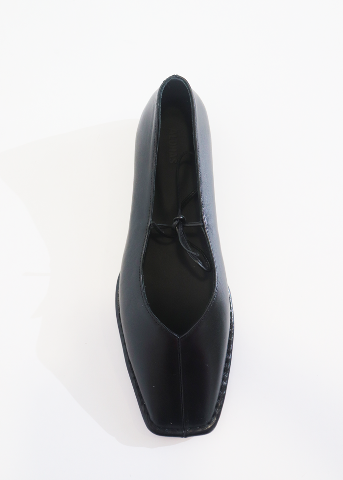 „Sway“ modelis pagamintas iš klasikinės juodos odos, su V formos iškirpte priekyje ir per pėdos viršų rišamais kaspinėliais, suteikiančiais modeliui žaismingo akcento. Žemas kulniukas ir lankstus padas užtikrina komfortą visai dienai – tiek aktyviai leidžiant laiką, tiek ilsintis namuose.