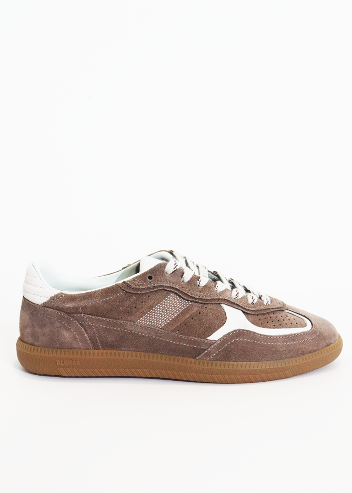 „Tb.490“ modelis pagamintas iš minkštos taupe spalvos zomšos, suteikiančios subtiliai prabangų įvaizdį. Kontrastingi kreminės odos intarpai išryškina dizainą, o tos pačios spalvos raišteliai su juodomis juostelėmis suteikia papildomo charakterio. Žemo profilio siluetas su guminiu padu, matomos siūlės ir įspaustas logotipas ant liežuvio bei šonų užbaigia klasikinį, bet modernų stilių.