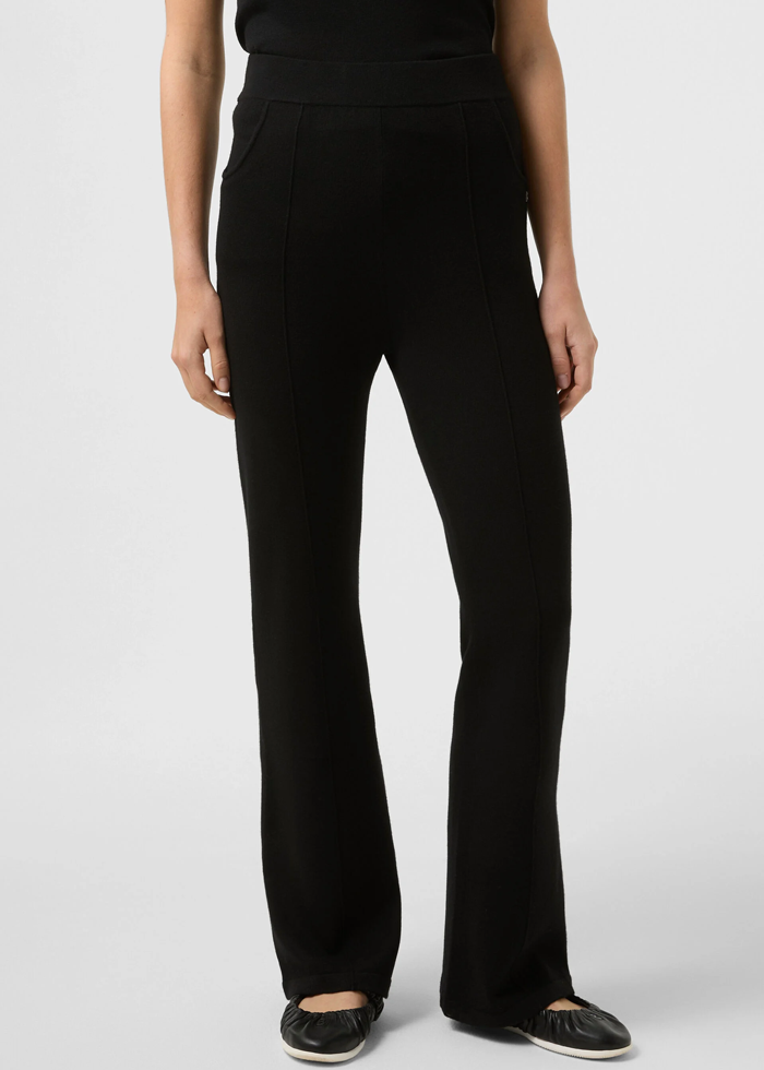 Juodos spalvos laisvalaikio kelnės. Vidutinis juosmuo. Kišenės.