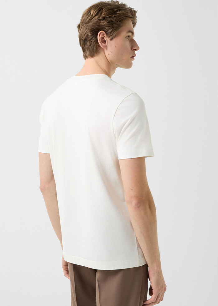 Baltos spalvos medvilniniai marškinėliai trumpomis rankovėmis. Apvali kaklo iškirptė. Ikoniškas minimalus BOGNER logotipas.