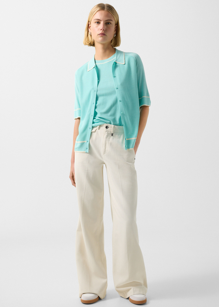 Plačių klešnių siluetas suteikia Rica džinsams modernų įvaizdį, o klasikinis penkių kišenių modelis su sagute užsegama monetų kišene papildo dizainą. Subtilios logotipo kniedės, derantis „signé“ ir odinis logotipo lopas suteikia stilingų akcentų. Medvilnės ir „Tencel“ audinys užtikrina komfortą.
