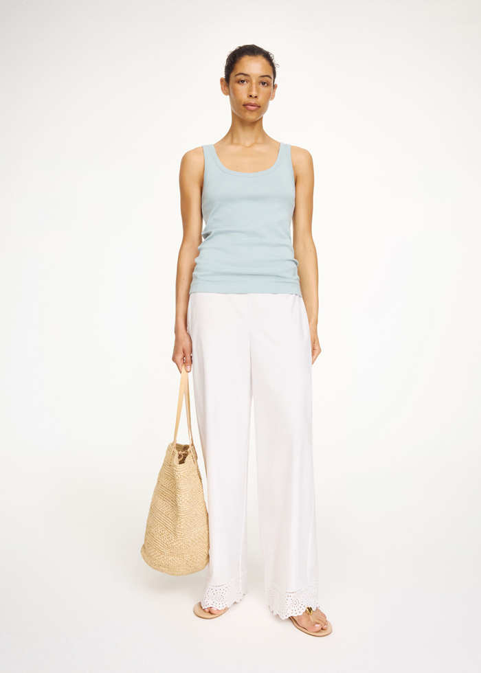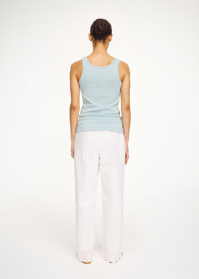 Nepriklausomai nuo metų laiko, minimalistinio stiliaus berankovė palaidinė lengvai įsilies į jūsų garderobą – būtent tokia yra „Dali“. Iš organinės medvilnės pagamintas modelis su gilia apvalia iškirpte išsiskiria subtiliu dizainu, kurį papildo tik nedidelis, išsiuvinėtas monogramos akcentas. Puikiai tinka sluoksniavimui, keičiantis sezonams ir orams.