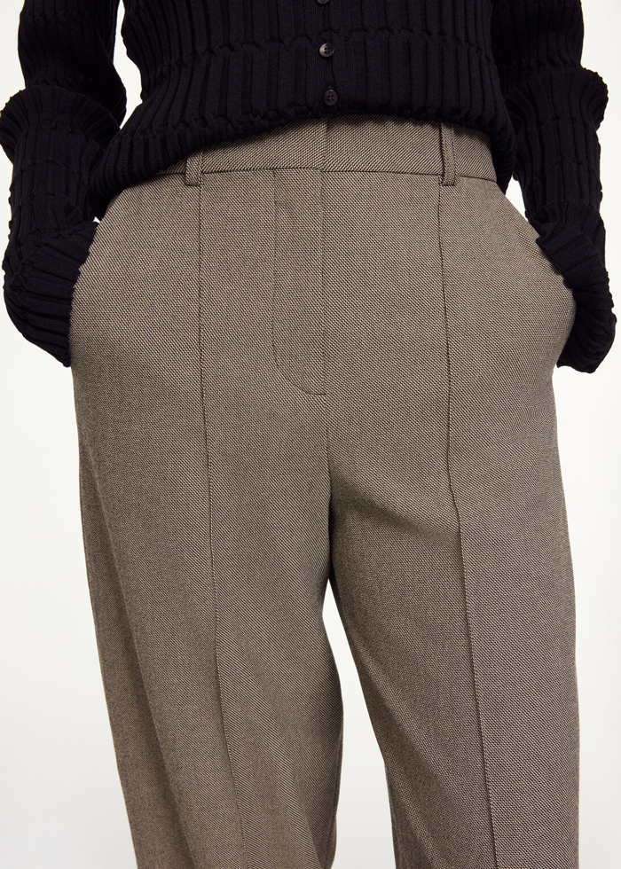 Margos regular fit kirpimo kelnės. Aukštas juosmuo. Kišenės. Kilpos diržui. Užsegamos užtrauktuku.