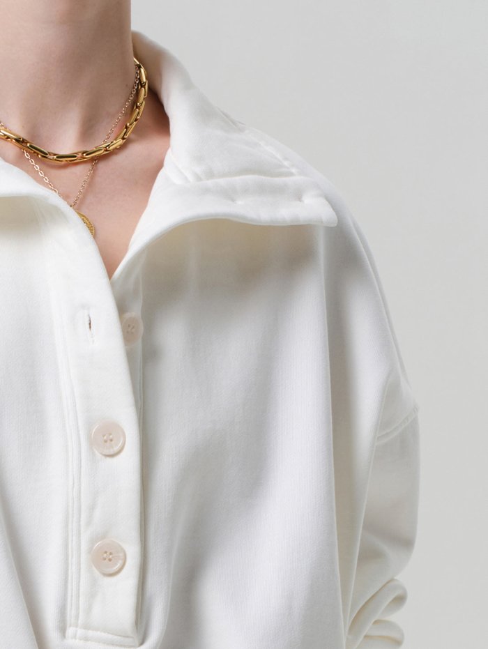 „Mirelle“ džemperis – moderni klasikinio modelio interpretacija, pagaminta iš minkšto, švelnaus audinio, suteikiančio jaukumo. Modelis su aukšta apykakle ir sagų užsegimu, laisvo silueto. Puikus pasirinkimas sluoksniavimui ir patogiam, bet stilingam laisvalaikio įvaizdžiui.