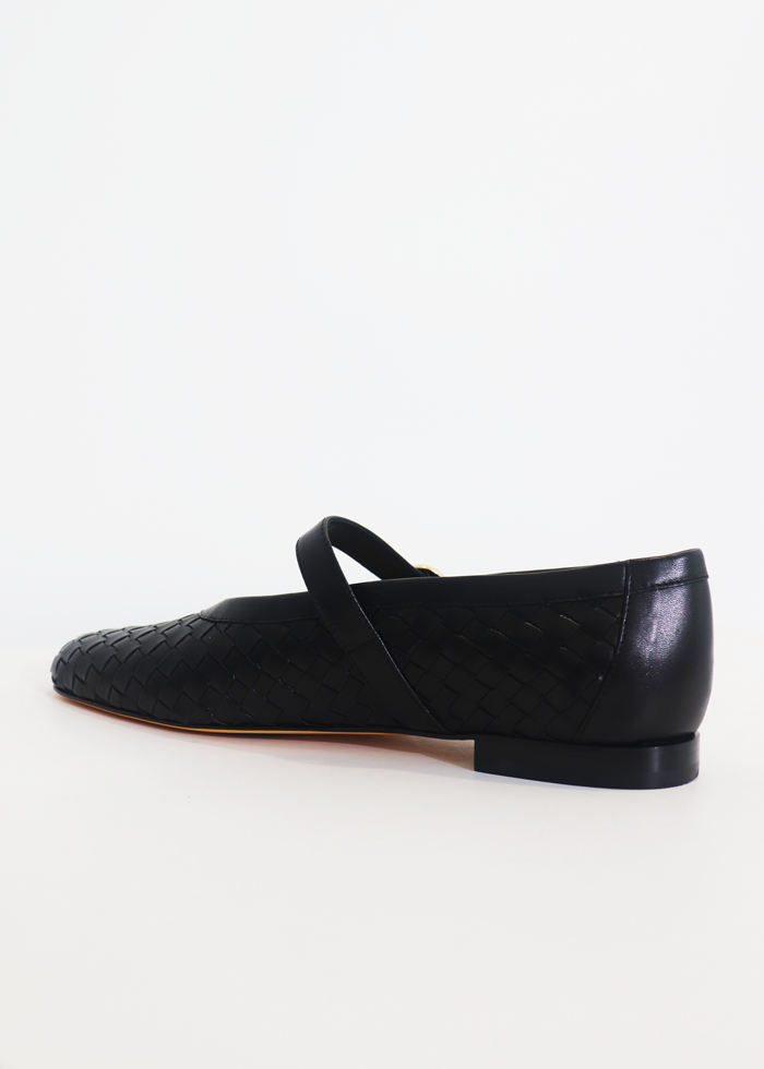 Juodos spalvos odiniai elegantiški bateliai. Susegami sagtele. Apvali noselė. Pynių raštas.