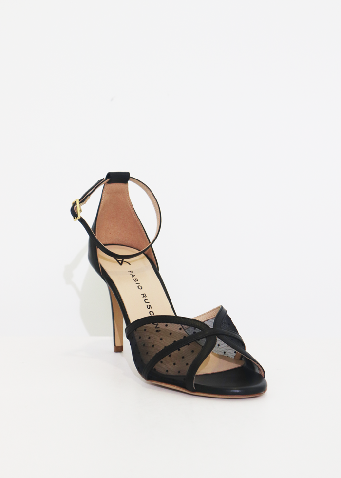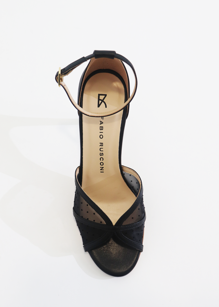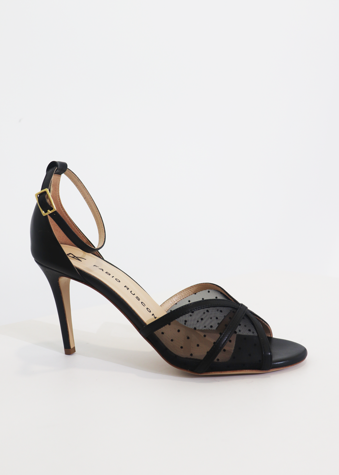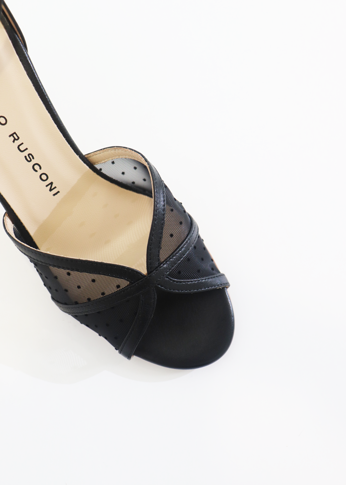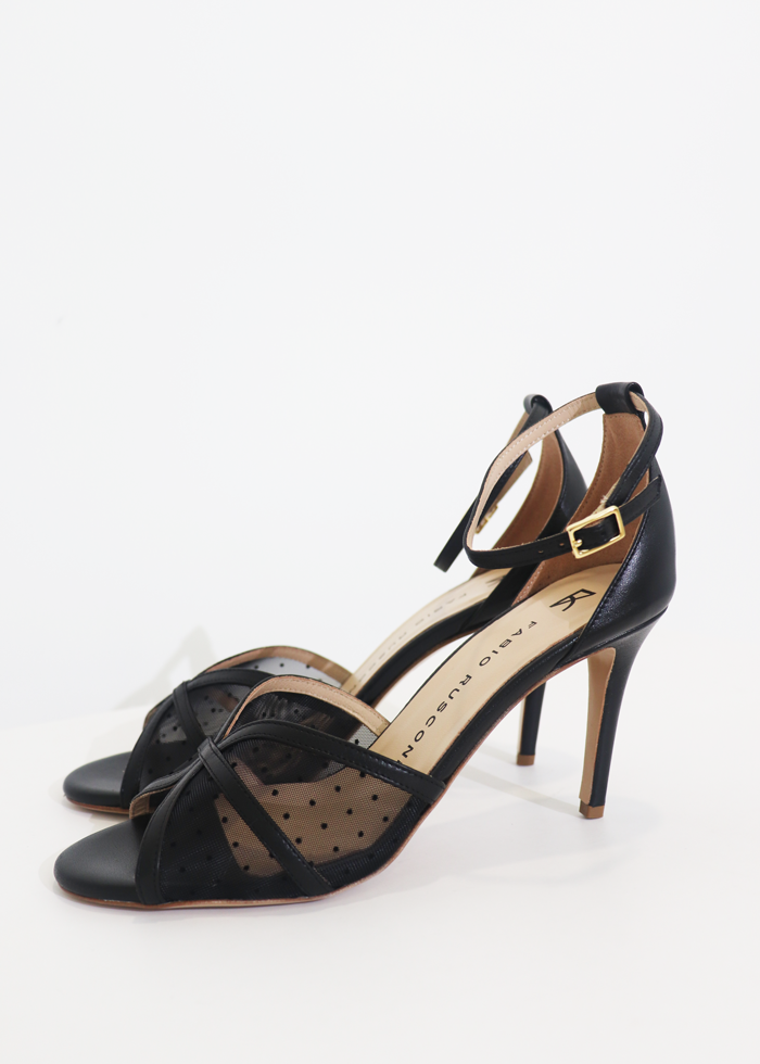 Juodos spalvos atviros elegantiškos basutės ant kulno. Užsegamos sagtele.