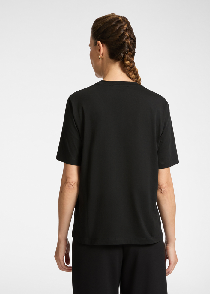 Šviesiai rožinės spalvos medvilniniai marškinėliai trumpomis rankovėmis. Apvali kaklo iškirptė. Aplikacija.