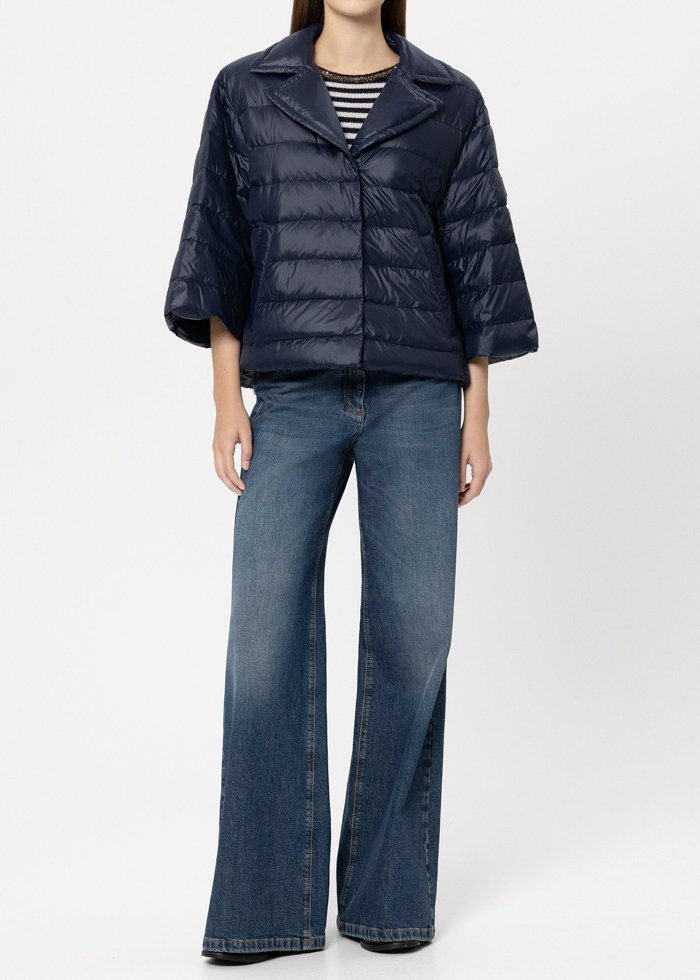 Juodos spalvos dygsniuota oversize silueto stilinga stiukė. Apykaklė. Užsegama spaudėmis. Kišenės. Su pamušalu.