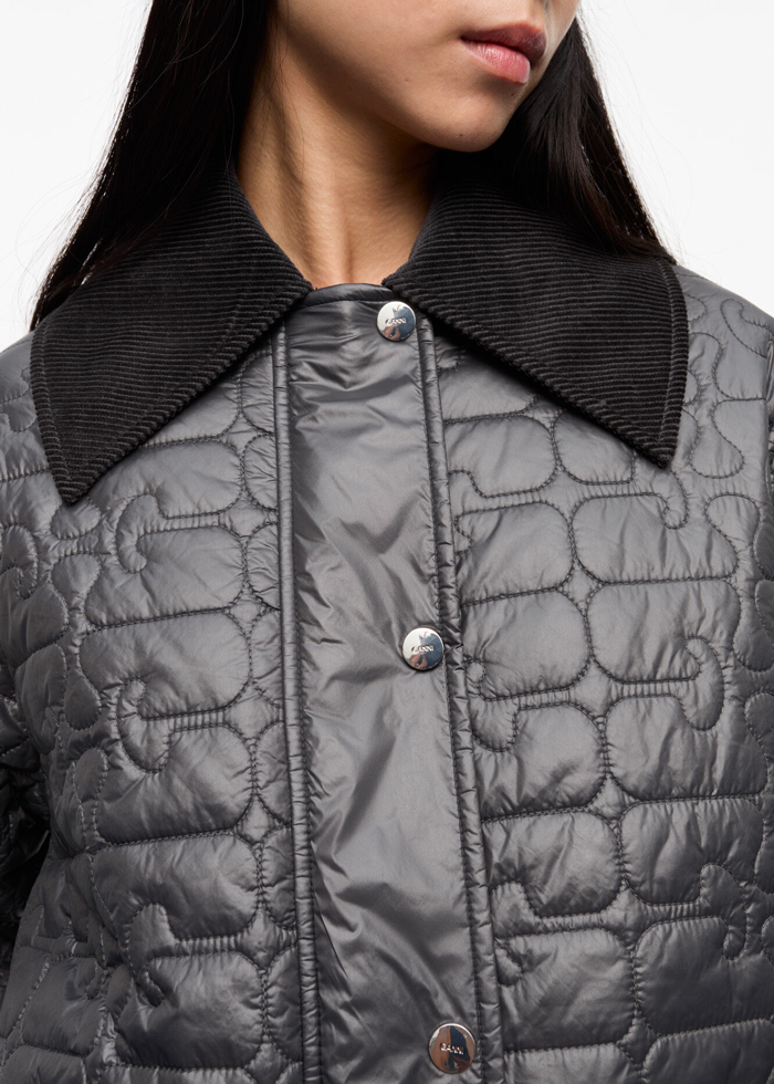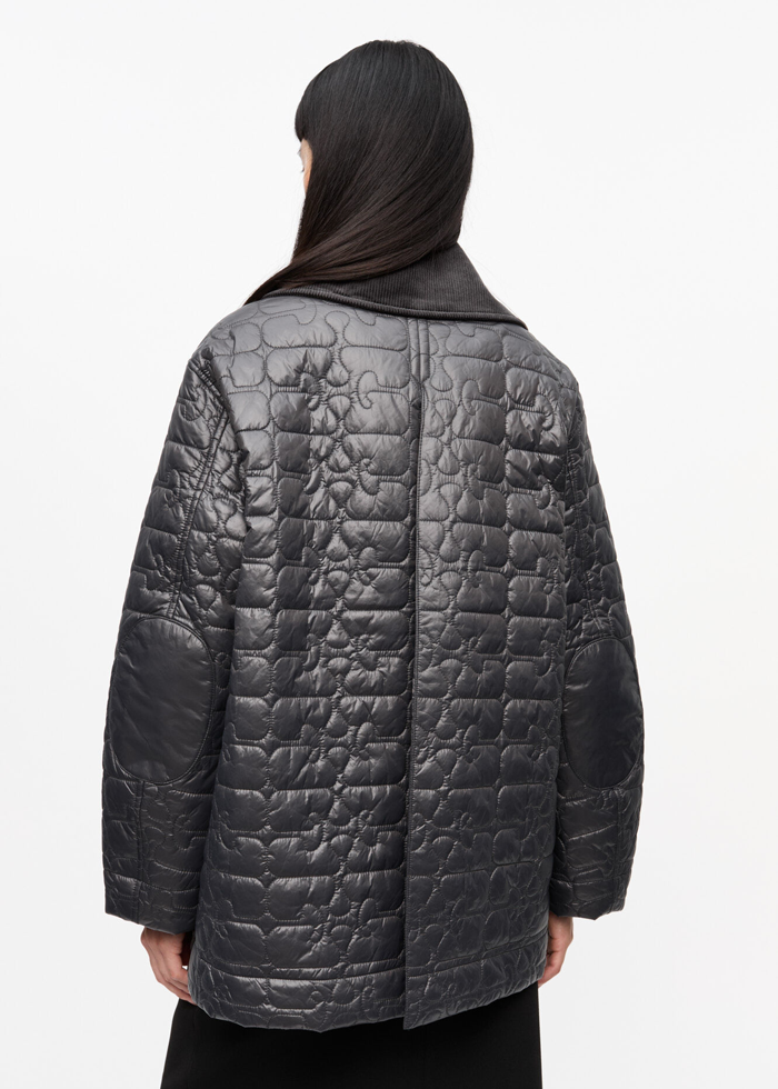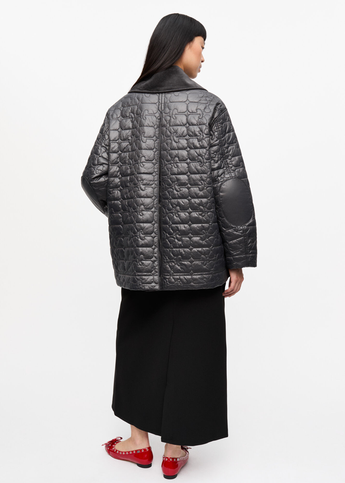 Juodos spalvos dygsniuota oversize silueto stilinga stiukė. Apykaklė. Užsegama spaudėmis. Kišenės. Su pamušalu.