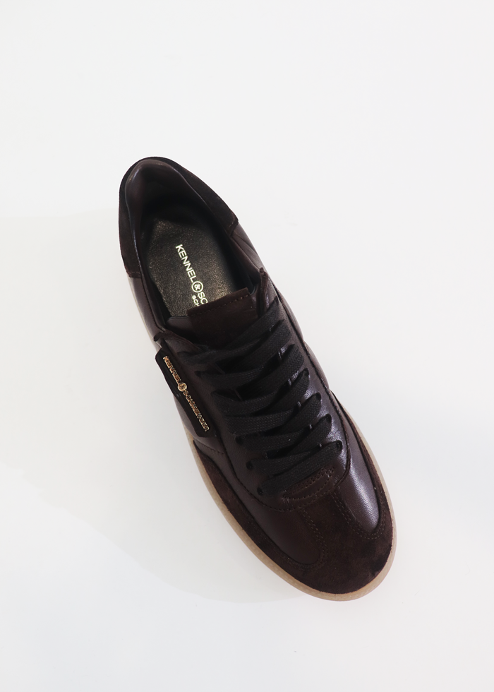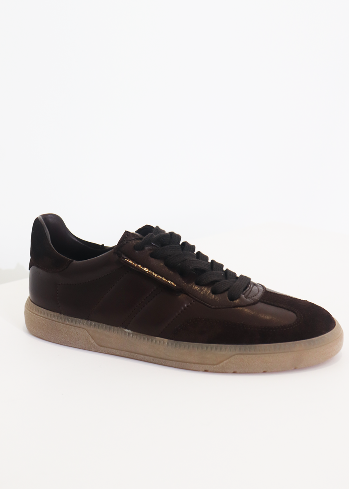 Šokolado rudos spalvos laisvalaikio bateliai. Varstomi raišteliais. Apvali noselė.