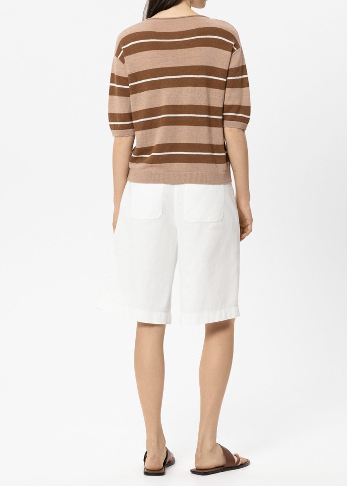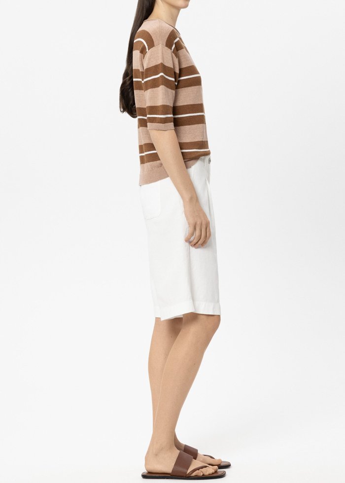 „Bermuda“ tipo šortai iš lengvo medvilnės ir liocelio mišinio, su plačiomis klešnėmis ir klostėmis. Modelis turi keturias kišenes – dvi šonines ir dvi uždėtines gale. Juosmuo su diržo kilpomis, užsegimas saga ir užtrauktuku. Šoninėse juosmens dalyse esantys dirželiai su sagomis suteikia išskirtinį stiliaus akcentą.