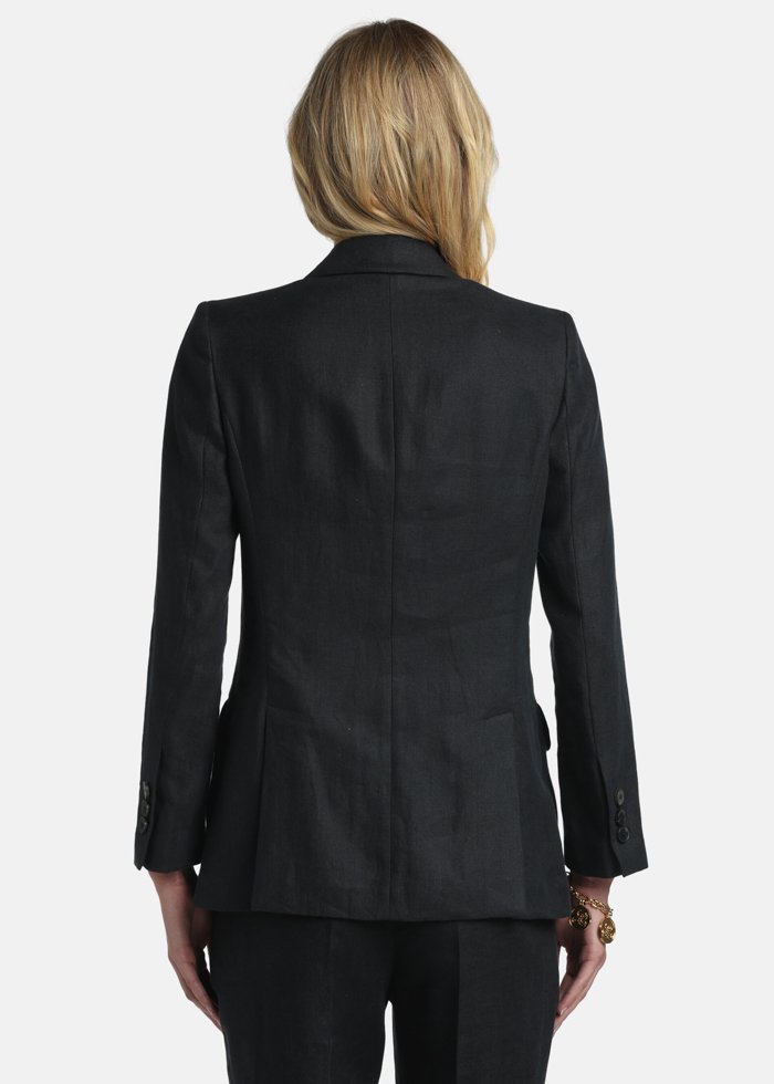 Klasikinio silueto švarkas iš gryno lino, išsiskiriantis lengvumu ir natūraliu elegantiškumu. Vienaeilis modelis su derančios spalvos saga ir subtiliais skeltukais nugaroje užtikrina patogų judėjimą bei dailų silueto kritimą.