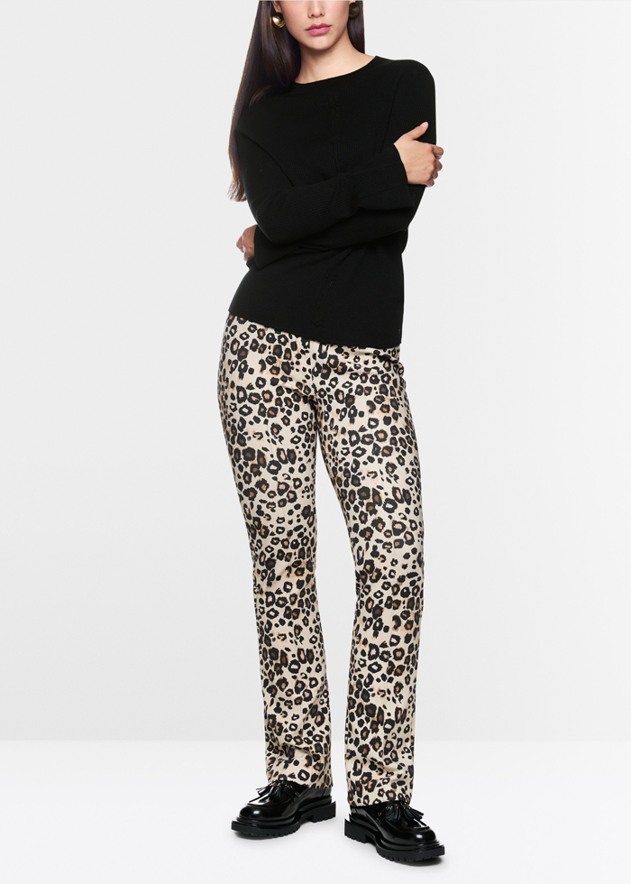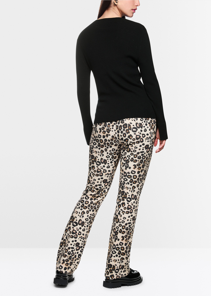 Juodos spalvos prigludęs elegantiškas megztinis ilgomis rankovėmis. Apvali kaklo iškirptė.