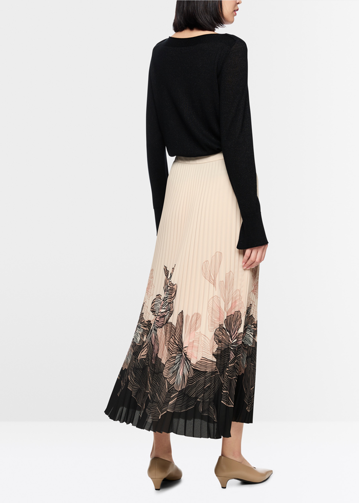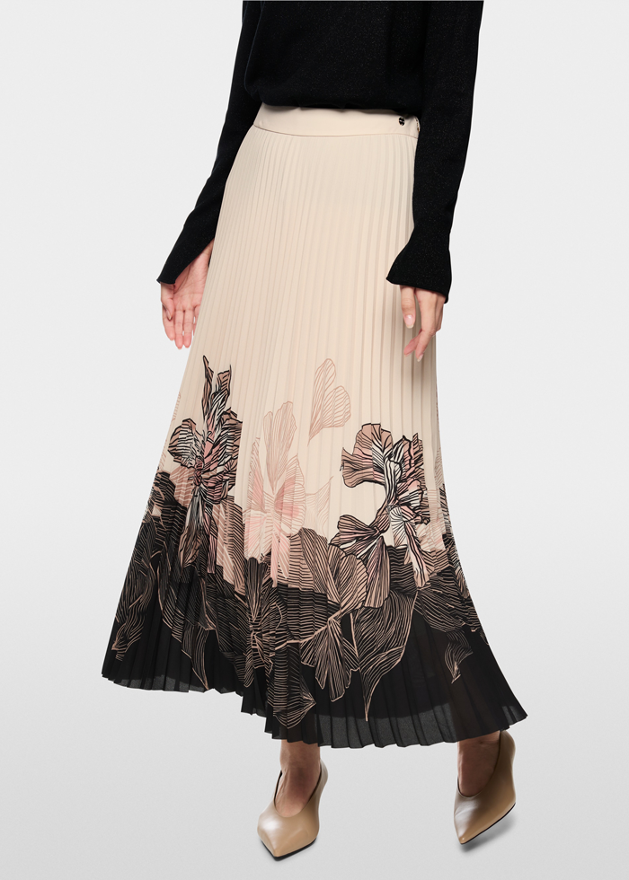 Margas plise maksi ilgio sijonas. Vidutinis juosmuo. Užsegamas užtrauktuku.
