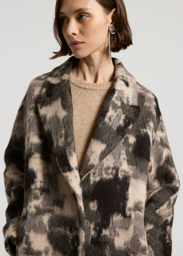 Išskirtinis elegantiškas paltas A formos silueto. Vienos sagų eilės modelis. Su pamušalu.