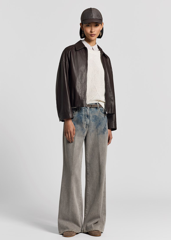 Šis megztinis pagamintas iš lino ir medvilnės melanžinių siūlų, papildytų subtiliai į audinį įkomponuotais blizgučiais, kurie suteikia lengvo spindesio.