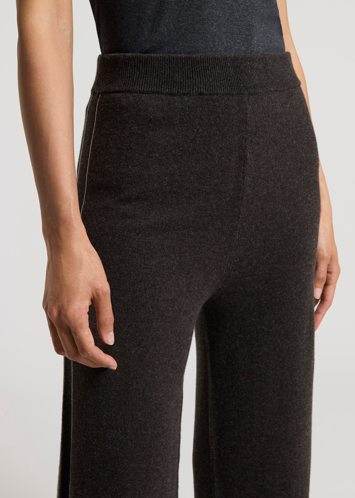 Tamsios spalvos tiesaus silueto laisvalaikio kelnės. Vidutinis elastinis juosmuo.