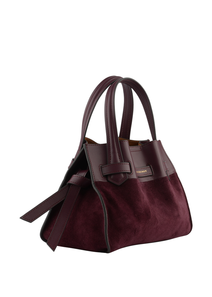Burgundiškos spalvos odinė ,,Blossom Daim” rankinė. Ilga perpetinė rankena. Lygios ir verstos odos dizainas.