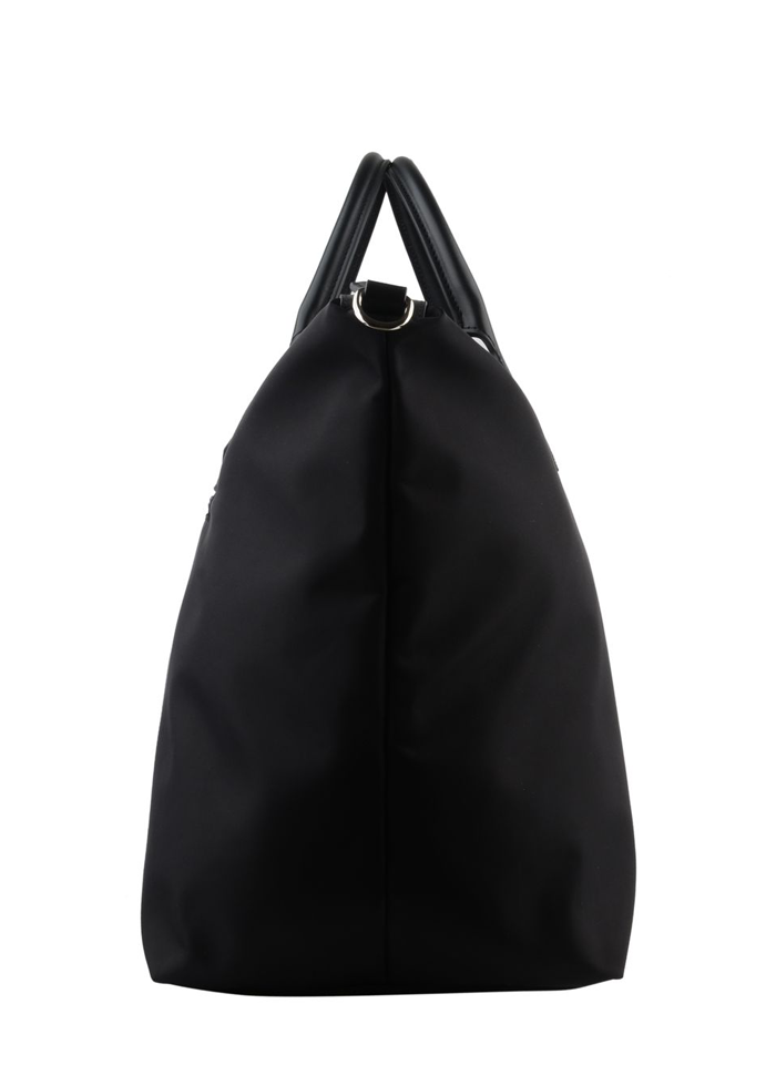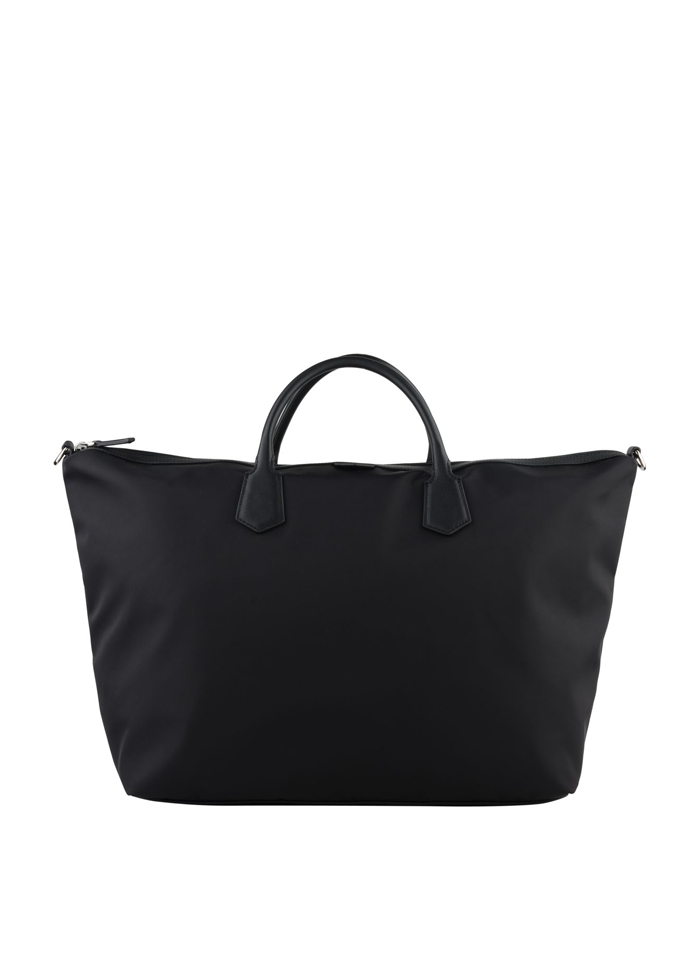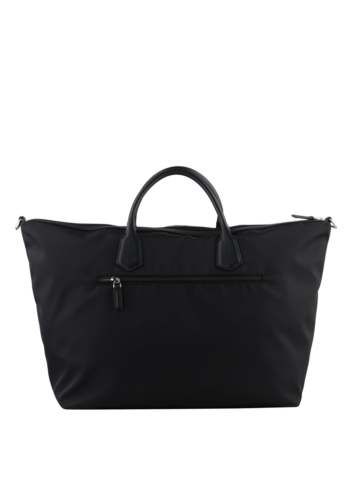 Juodos spalvos talpus kelioninis krepšys. Užsegamas užtrauktuku. Ilga perpetinė rankena.